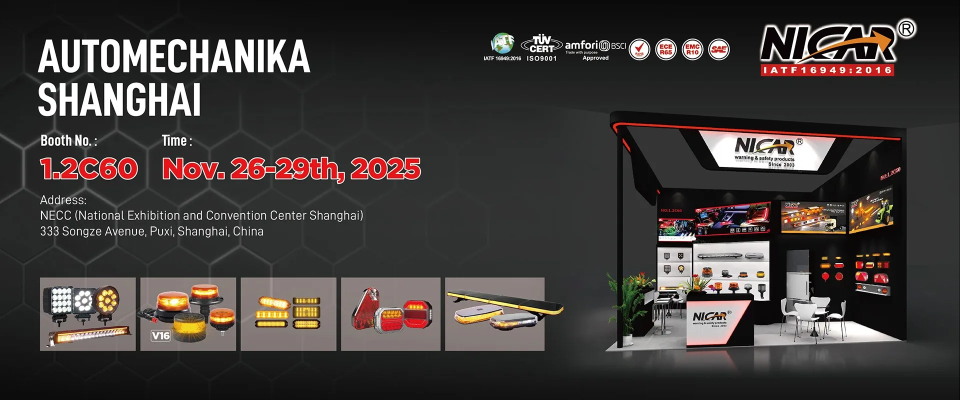 Certified product: -E-MARK, SAE, CE, ROHS, IP, EMC, DOT